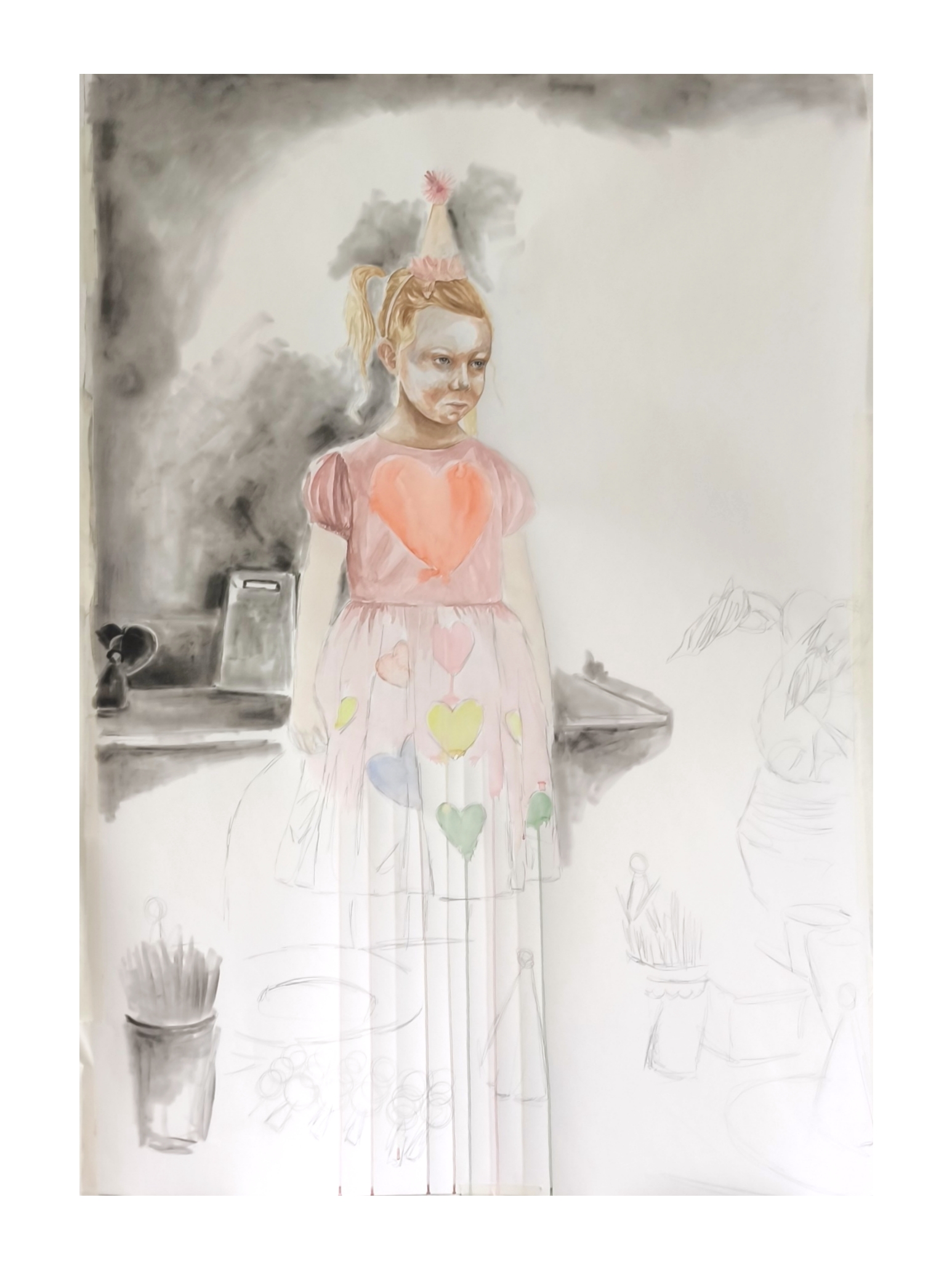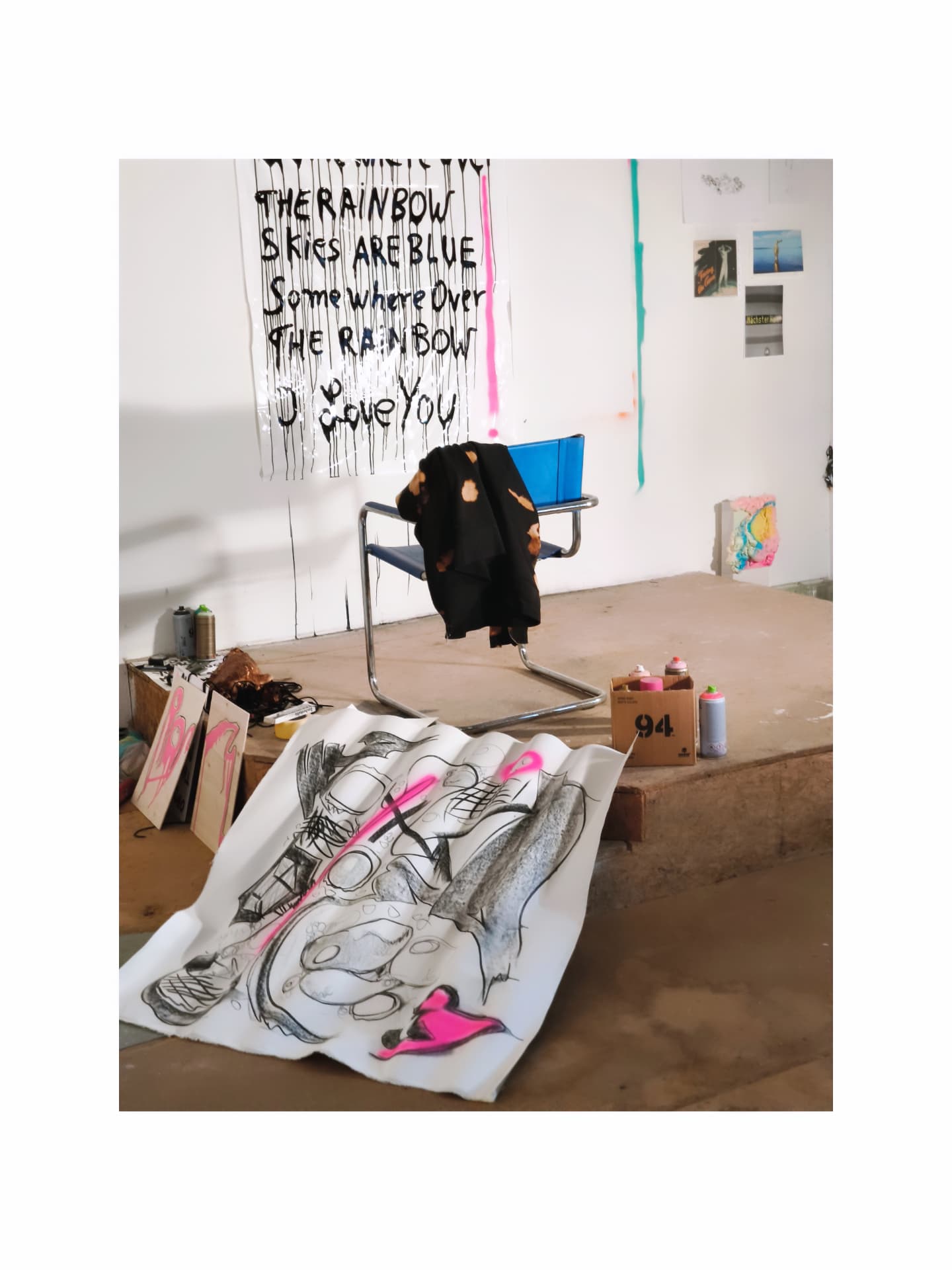 As our working method is strongly shaped by contemporary everyday life and we work across different artistic disciplines that align well with today’s values of child rearing, we began to involve our daughter in parts of our daily work and in selected series of works. Whenever she felt like joining us of her own free will, a form of shared working emerged.