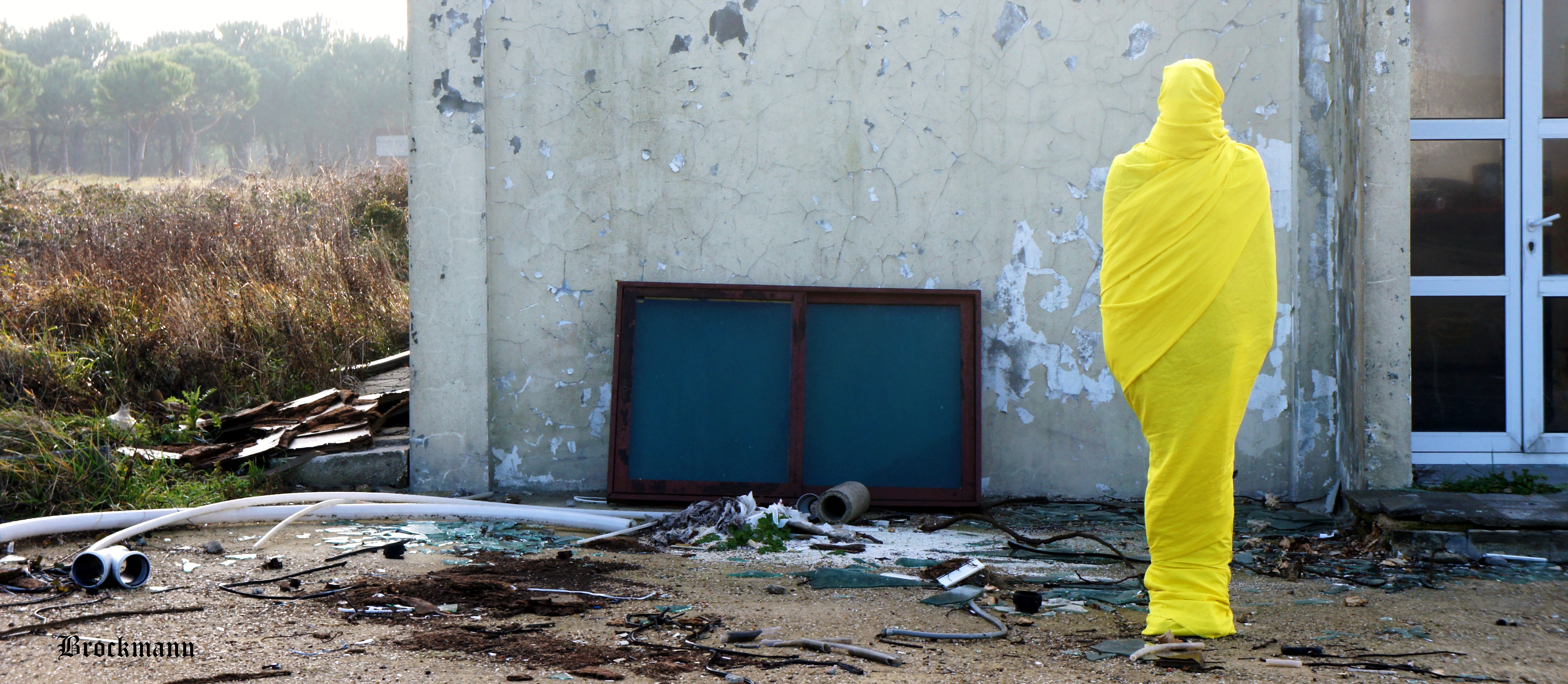 After his father died, Brockmann left Germany for Turkey where he found yellow fabric in a turkish bazaar. It became a kind of phylactery to him and he wrapped himself in it, protecting himself from the world. Whilst to spectators he seemed statuesque and hollow, to the artist, he was internally vibrating in his own scripture of silence.